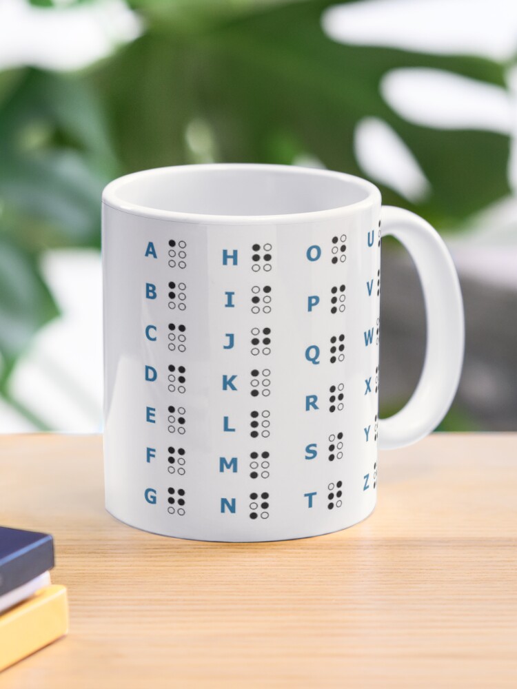 Change hands and you'll get the Braille alphabet!After enough cups of coffee with this mug, you'll know every single letter in both alphabets – pretty cool!