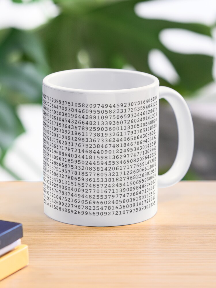 While trillions of decimals have been discovered by scientists, our humble Pi study mug offers you the first 1500. Each row has 75 decimals, and maybe over time you'll at least be able to memorize the first row!